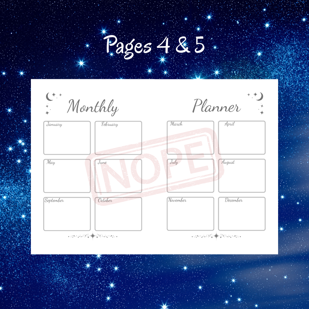 Format: Single PDF Size: A5 (5.8 x 8.3 in) Design: Minimalist Celestial, 8 unique pages Compatibility: Refillable binders, graphics should also scale nicely for larger prints 🙂