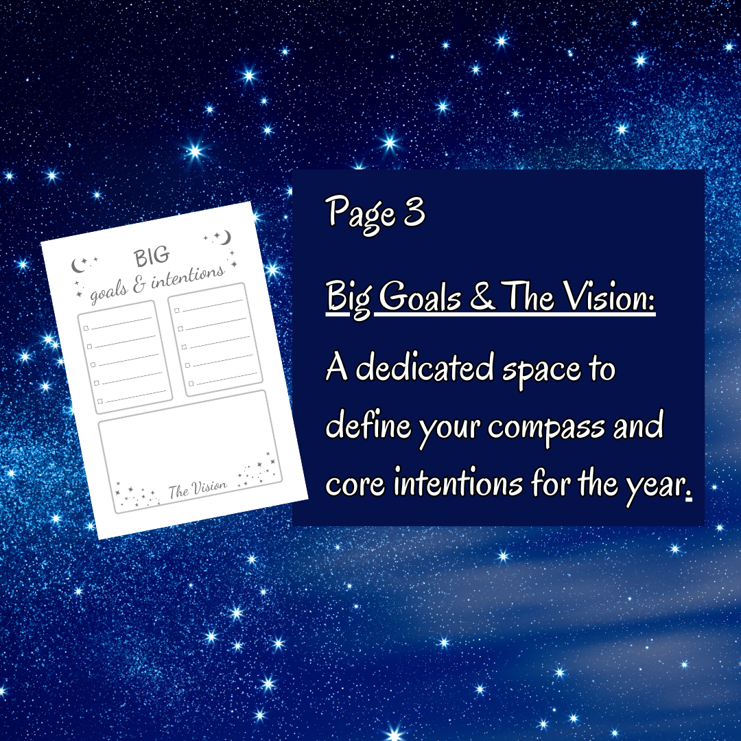 Big Goals & The Vision: A dedicated space to define your compass and core intentions for the year.