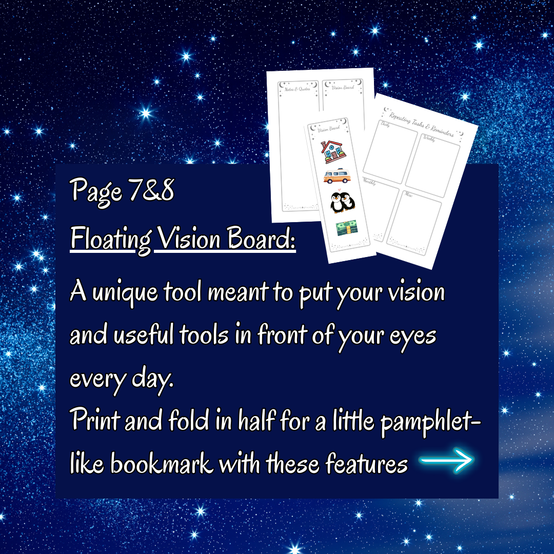 Also includes a Floating Vision Board as well as plenty of space for stickers and sketches!
