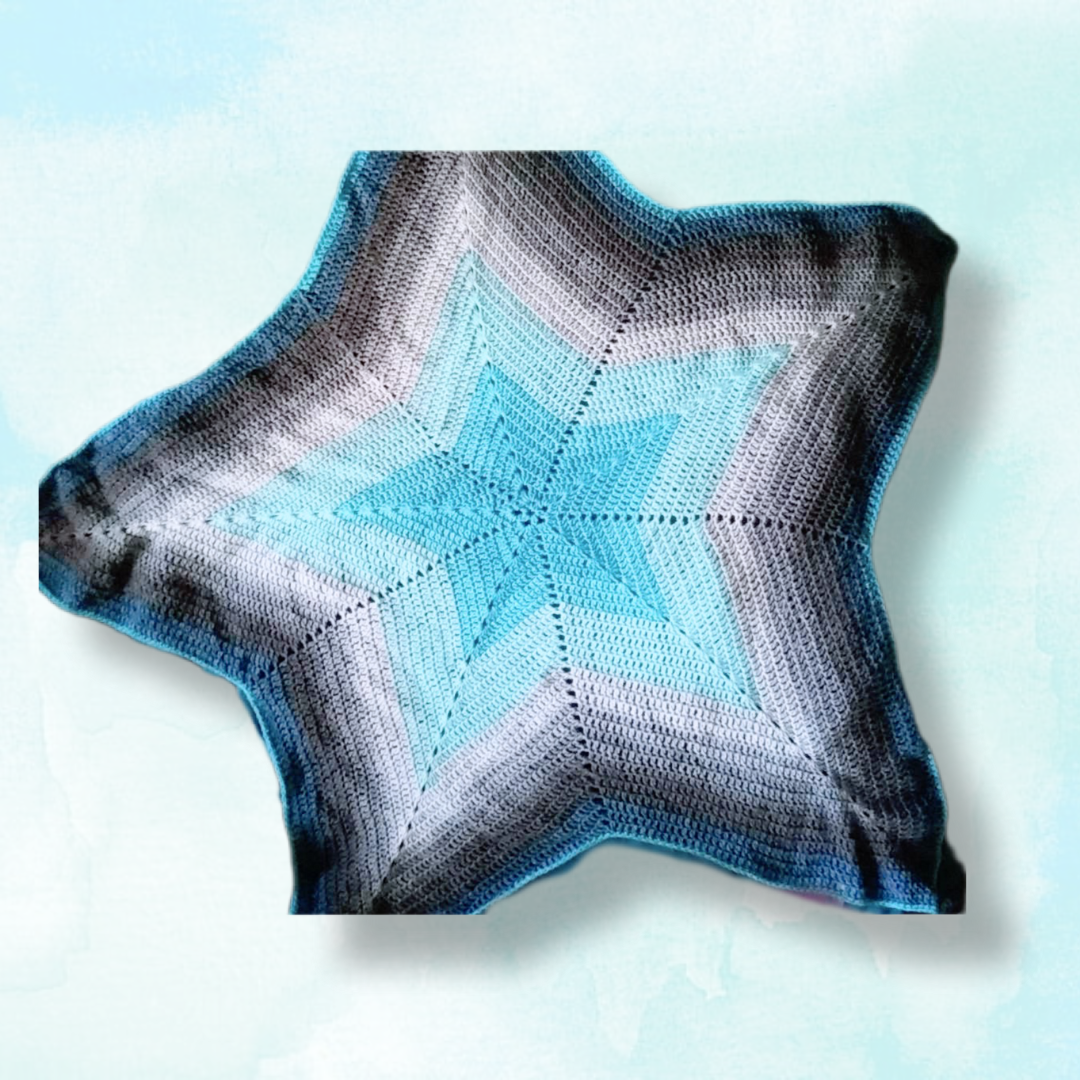 Cosmic Comfort: Handmade Blue & Gray Star Shaped Throw Blanket