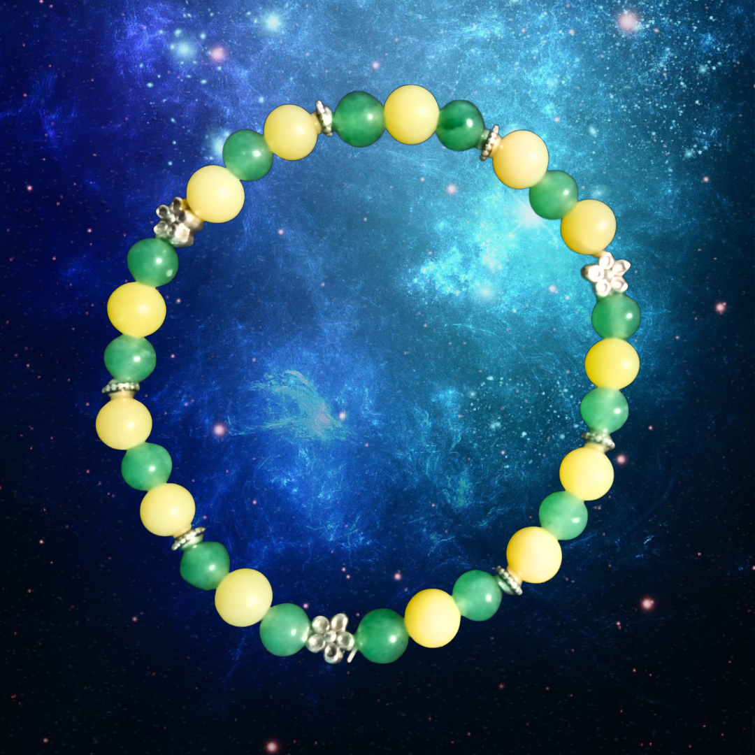 This beautiful Lemon Jade & Green Aventurine Bracelet is a powerful tool for attracting abundance and good luck into your life. The harmonious blend of Lemon Jade and Green Aventurine makes it an ideal companion for creators, dreamers, and anyone seeking to manifest their goals.