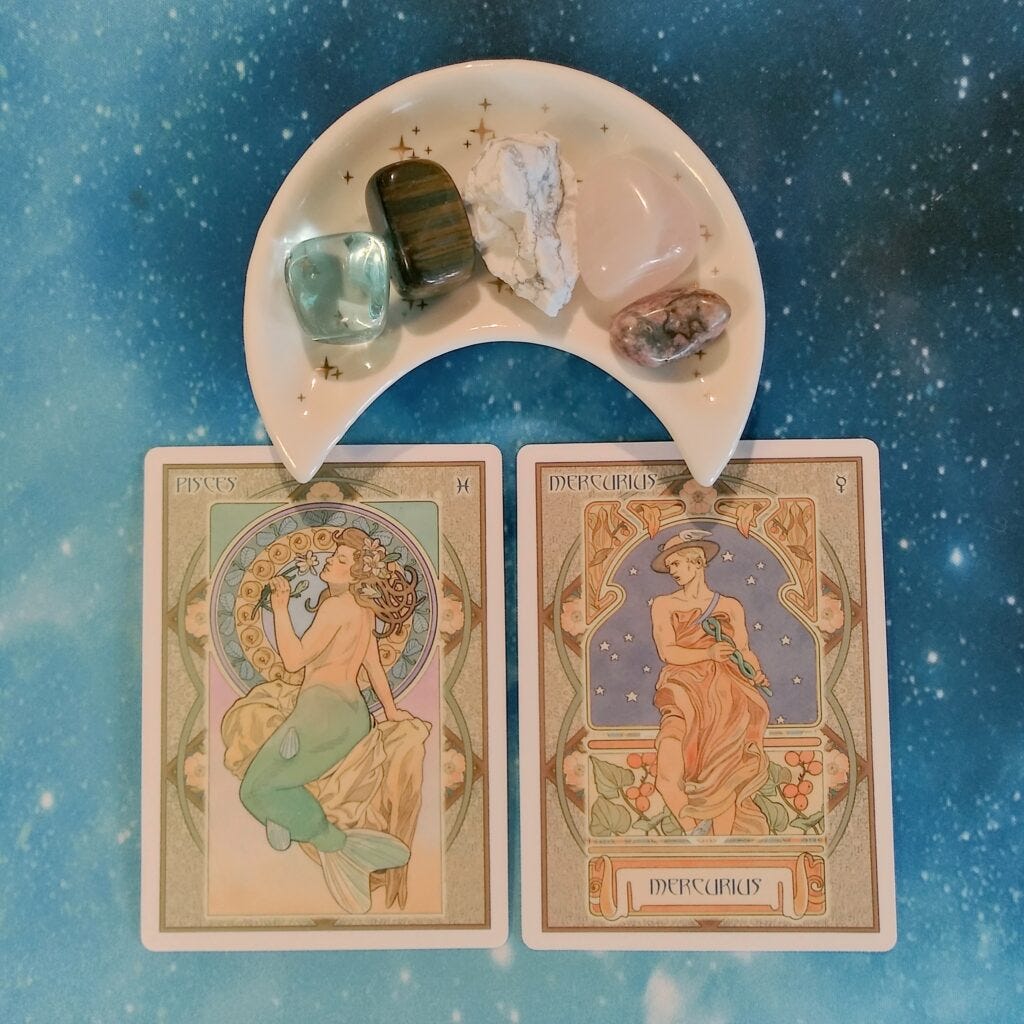 The second message concerns those of you who are currently being bombarded with creative ideas. There's definitely an urgency here that wants you to do all the things right now lest you lose them forever. Don't worry about losing them, just get some of the basics down. If you've been with me for a while, you might know that I like to digitally log my ideas and notes on everything. Here's a copy of an Airtable base where I log dreams, writing bits, etc. You will have to create an Airtable account if you don't already have one but it's free. Just copy the base and customize it to suit your own needs: Creative Journal