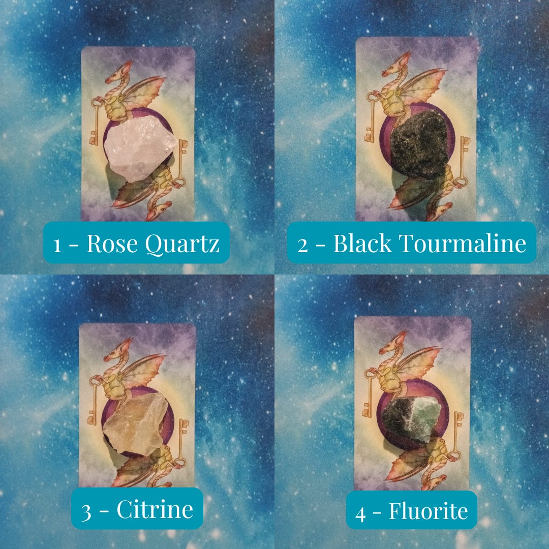 Crystals used: Rose Quartz, Black Tourmaline, Citrine, & Fluorite
