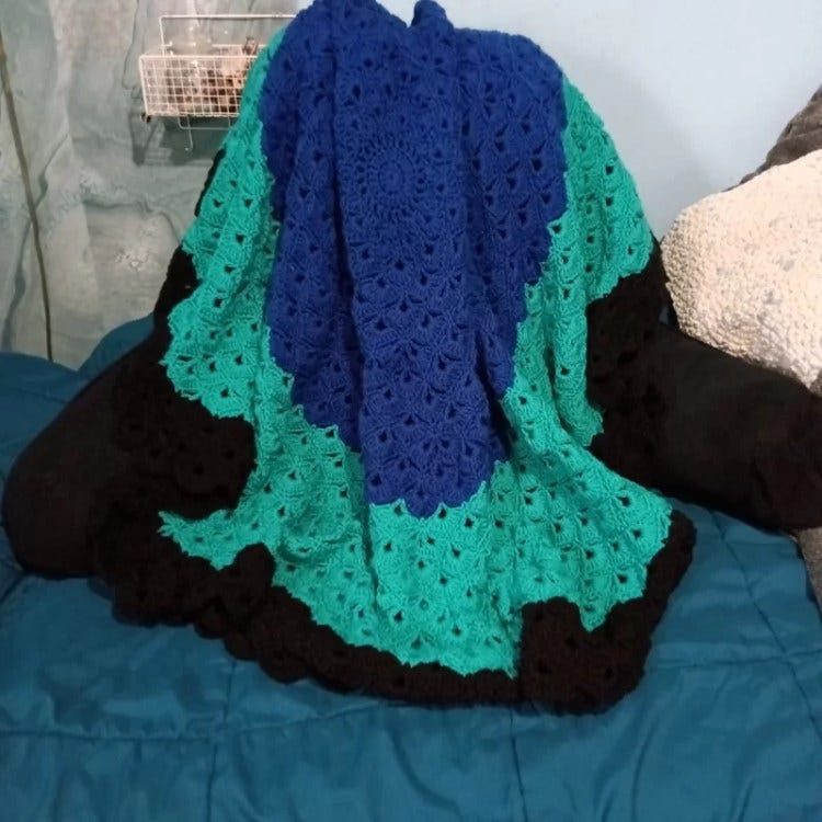 I spent the weekend after my birthday hanging out with my daughter and we got new yarn! That was on February 8th and I just finished the blanket I made with that yarn…I’m in love!